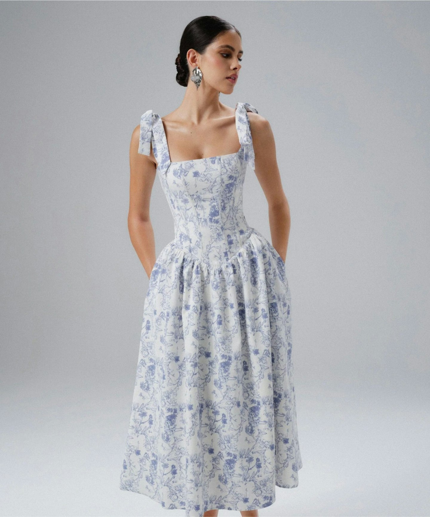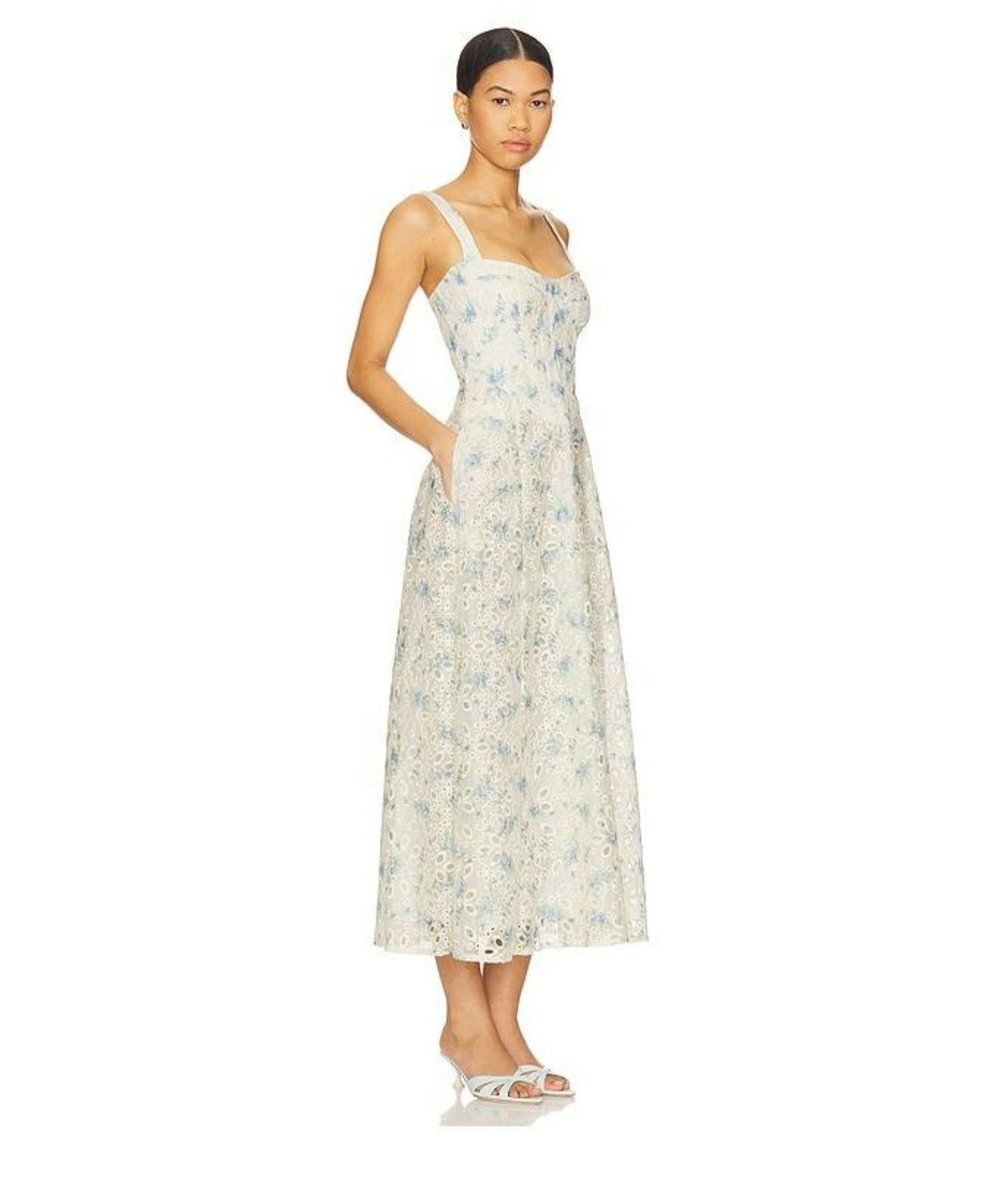 If ever an outfit screamed Greek summer, it’s this one. The original Lavish Alice Broderie Anglaise A-Line Midi Sundress is out of stock, but this Blossom Tie Shoulder Corset Midi Sundress in Blue Porcelain is a stunning substitute.