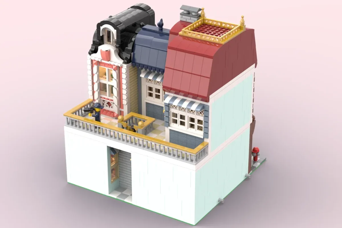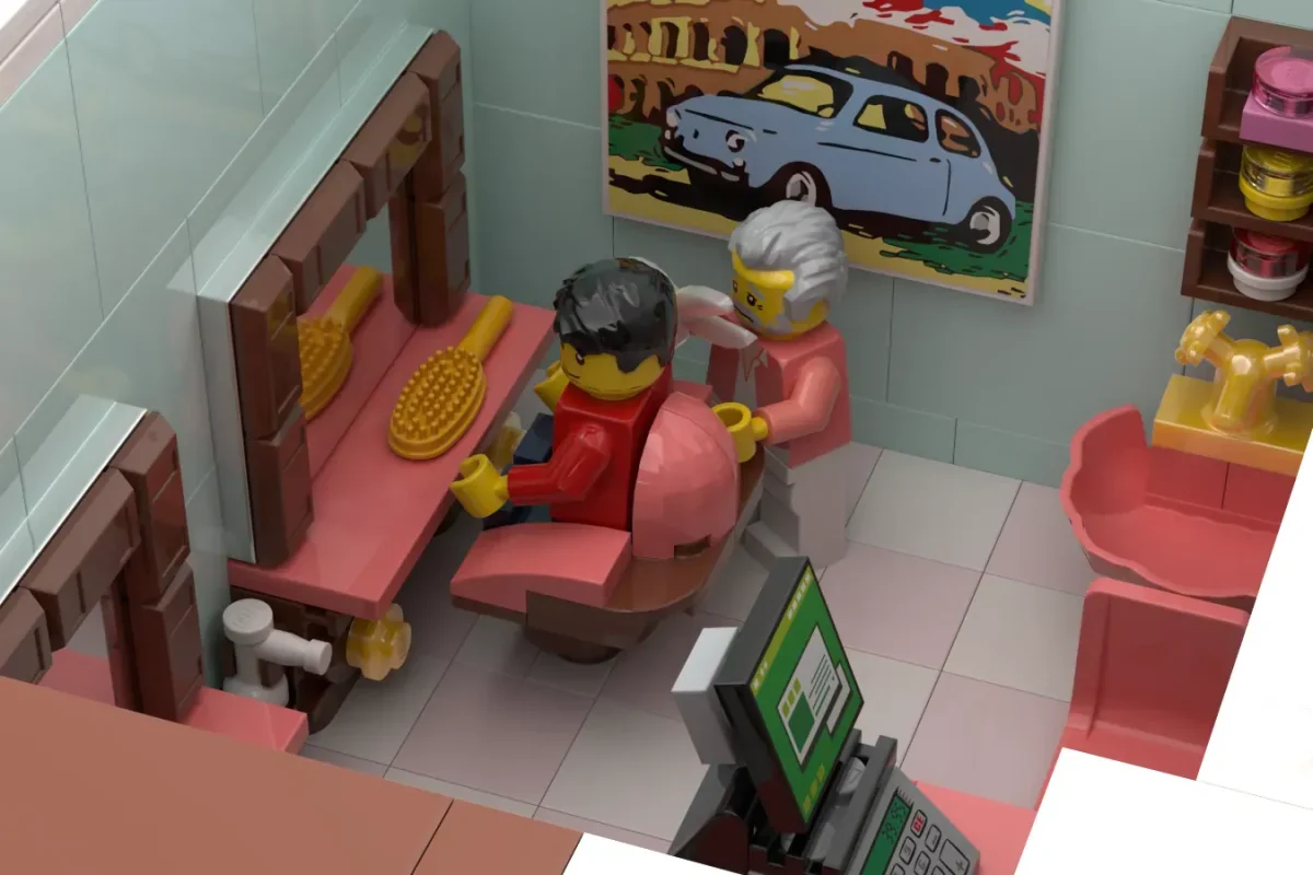The most recent set to join the review round is La Belle Ruelle, designed by Santheg. The colourful building houses a classic hairdresser and an old-school perfumery called ‘Brick Scent’. It’s built in a similar style to the LEGO Group’s own modular buildings, with the same level of detail on every interior floor and the exterior facade.