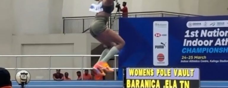 The moment Baranica Elangovan scripted history!! 🇮🇳🔥 She shattered the National Record in Women’s Pole Vault by clearing a massive 4.22m height at the 1st National Indoor Athletics Championships 2026!! 👏👏🏾 🎥 Sports Odisha
