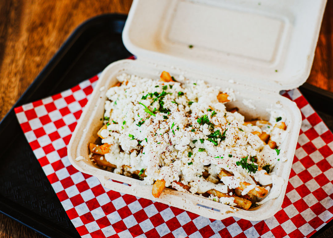 The creamy garlic sauce on the Greek Fries at Gyro Heroes deserves a seat on Mount Olympus.