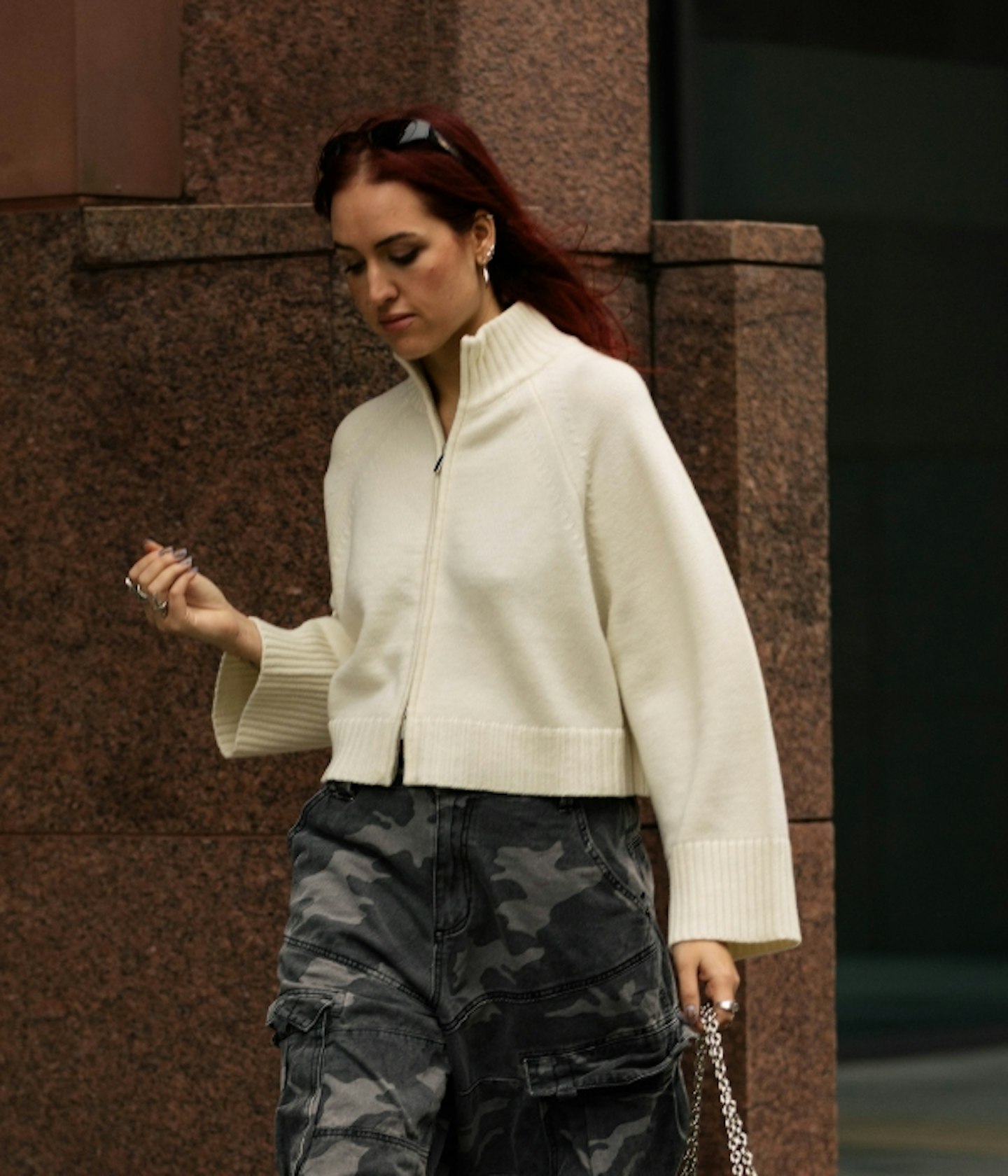 ‘A zipped funnel neck is a playful way to elevate a cardigan.’ Amber Backhouse, Grazia’s Fashion Assistant, explains. ‘While it looks like an expensive design, my high street heroes, including COS, Arket and M&S, all have iterations I’d add to basket.’