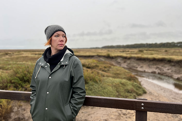 Dr Eleanor Janega on location in Norfolk