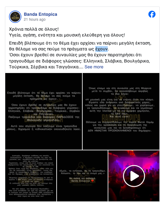 Banda Entopica, for its part, presents a markedly different version of events. In a statement, the band insists that it did not perform songs with irredentist or political content, but rather traditional pieces that form part of the broader Balkan musical heritage.